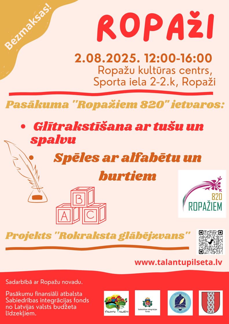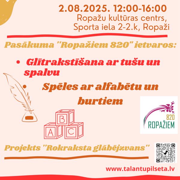 Talantu pilsētas realizētā projekta "Rokraksta glābējzvans" mērķis ir glīta rokraksta vēstnešu sagatavošana Vidzemē, glītrakstīšanas realizēšanas uzsākšana izglītības iestādēs, lai risinātu izglītības jomā aktuālu problēmu - nesalasāmi bērnu rokraksti. Projekta norises laiks, vieta: 01.01.-31.10.2025. Vidzeme.