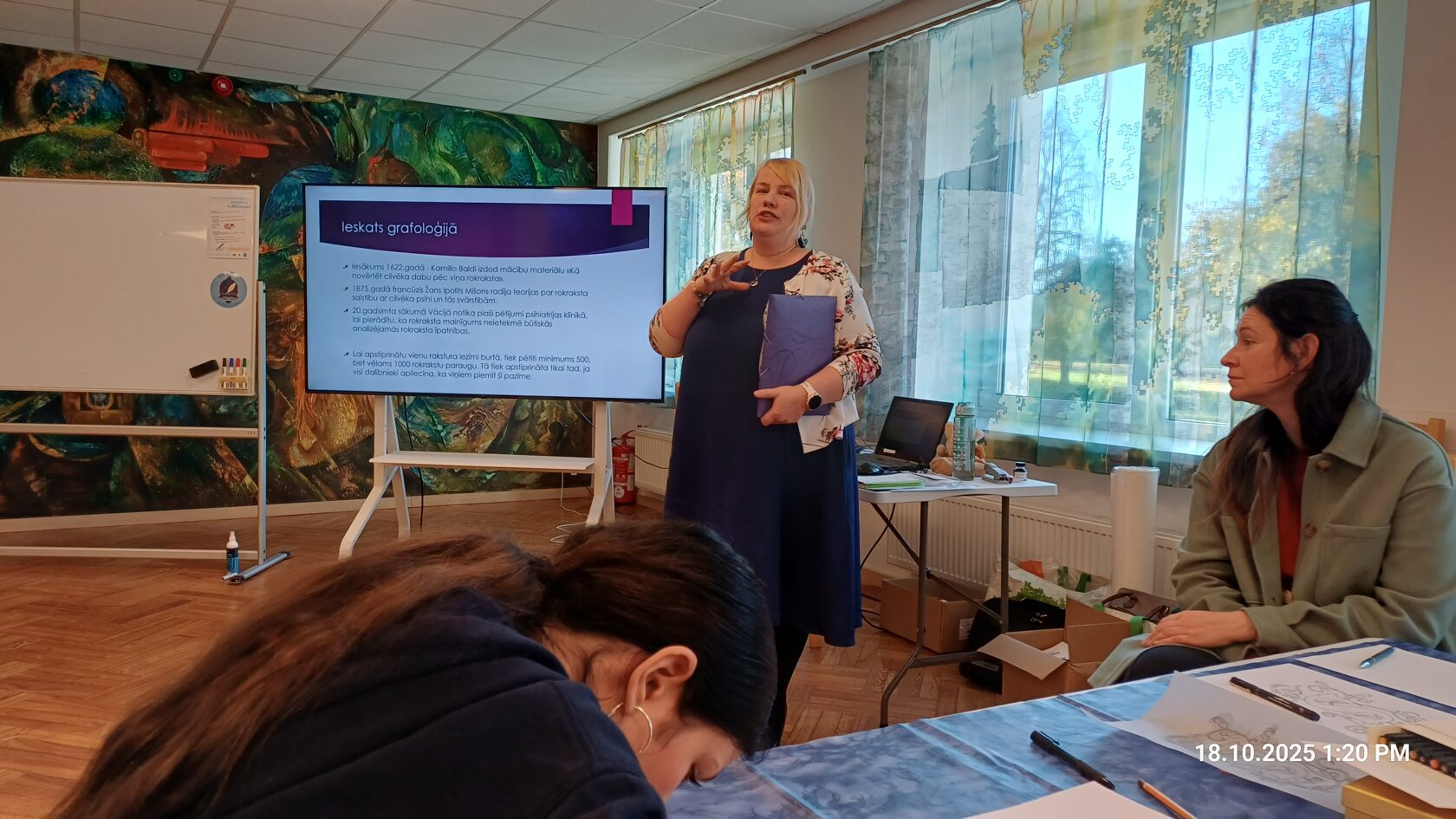 Jau uzsākot projektu solīju piesaistīt stāstījumu no rokraksta analīzes speciālistu puses. Pasākumā mūsu zināšanas grafoloģijas jomā papildināja Iveta Rozentāle no www.rokraksti.lv kā arī ikvienam bija iespēja izanalizēt sava uzrakstītā raksturīgos elementus un attiecināt tos uz sevi. Jo rokraksts veido personību! Projekta laikā mācījāmies glītrakstīšanas tehnisko pusi (burtu pareizrakstību), taču nepeiet ne ilgs laiks, kad bērns pieaug un burti "aug" tiem līdzi, jo veidojas personība!