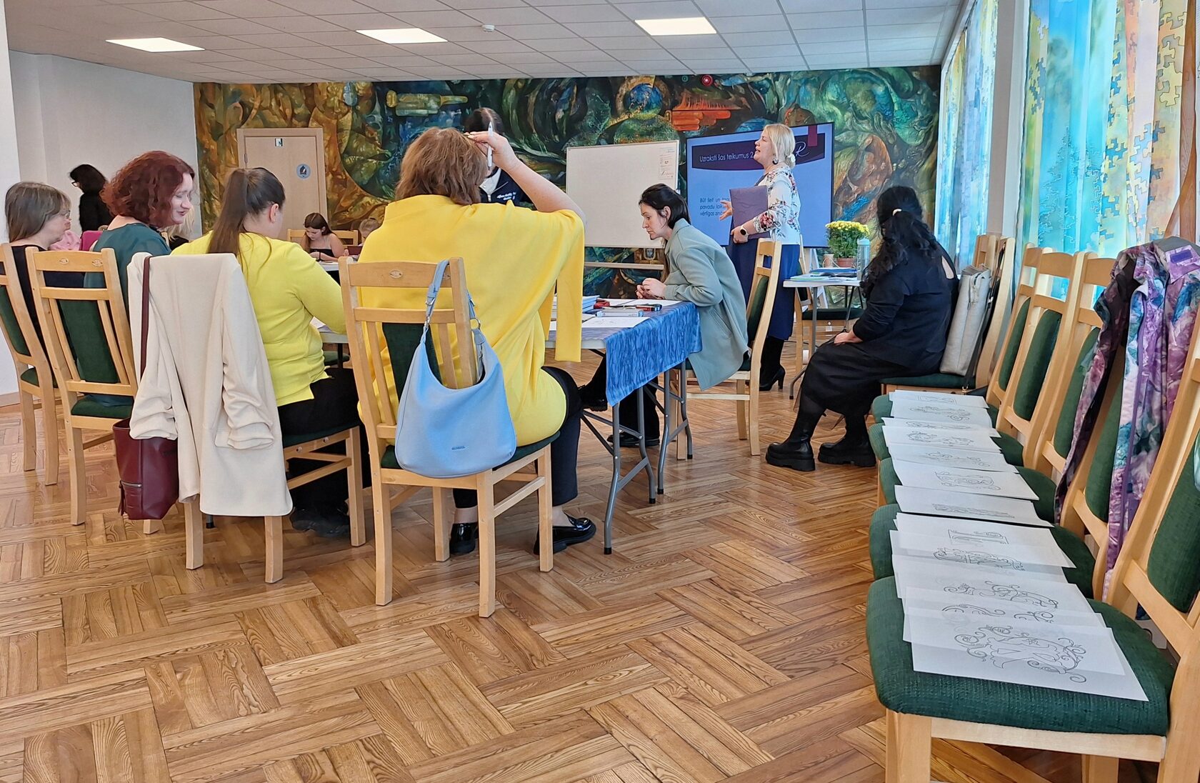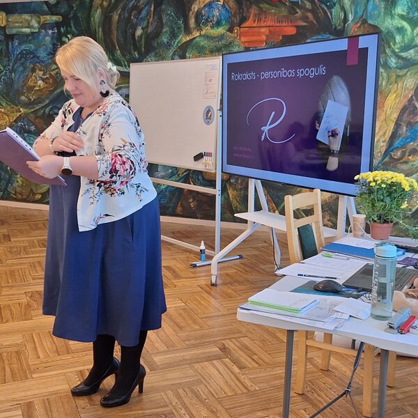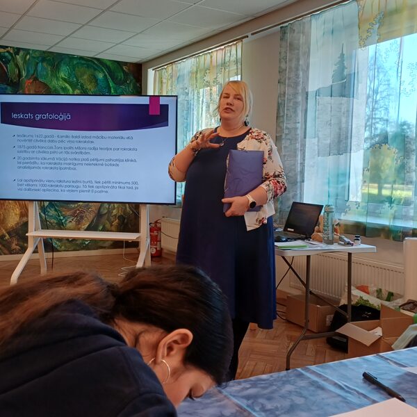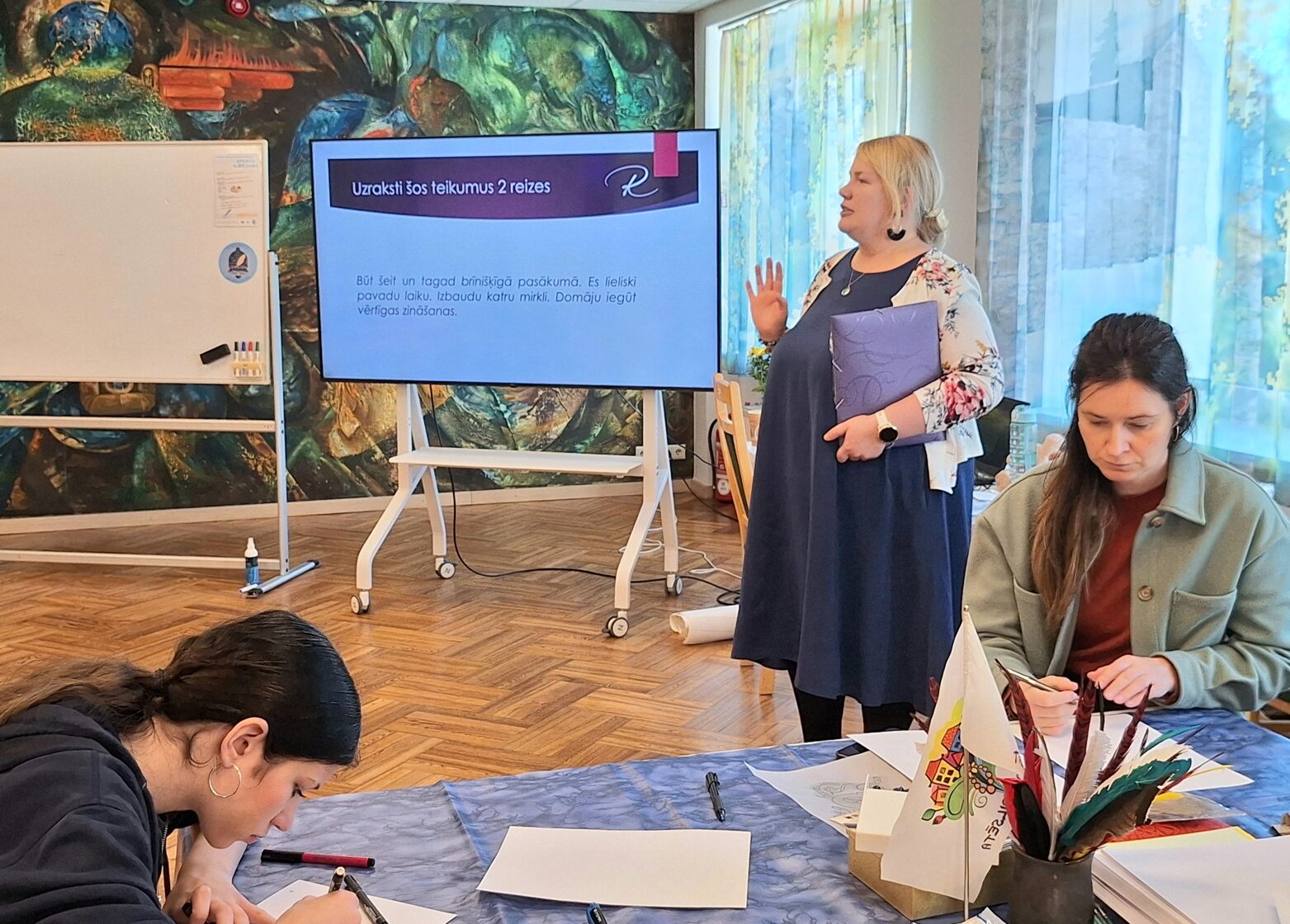Ar prieku baudījām gardo burtu kūku RG - rokraksta glābējzvans un sagaidījām projekta iedvesmojošo daļu, kas ievadot skolnieku brīvlaiku bija kā burvīgs atslodzes brīdis pedagogiem. Sadarbībā ar Latvijas Kaligrāfu biedrību, bija iespēja piedalīties 4 burvīgās meistarklasēs un radīt paliekošu atklātnīti sev vai kādam citam.